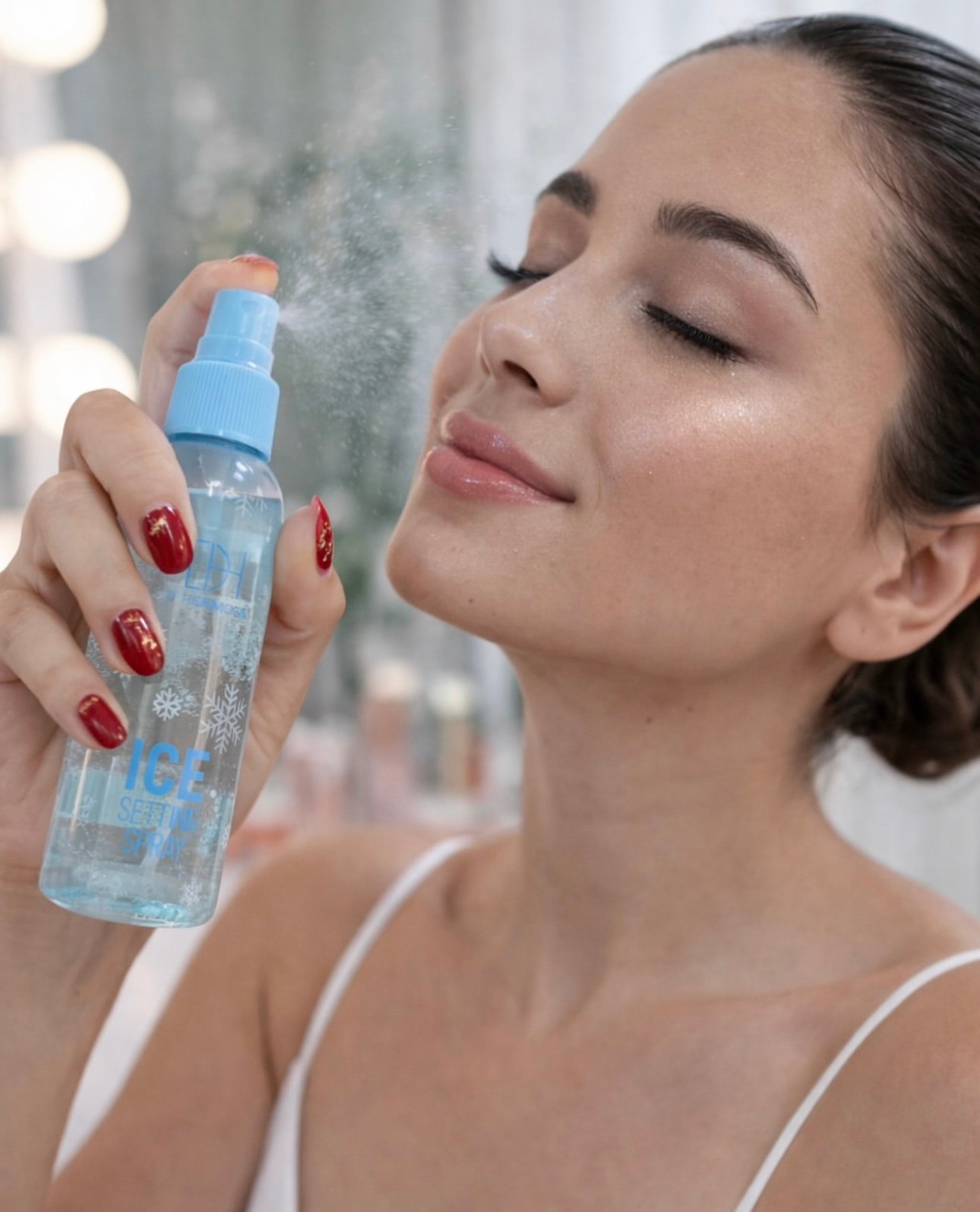 Spray fijador de maquillaje “Ice” de la marca D’Hermosa.