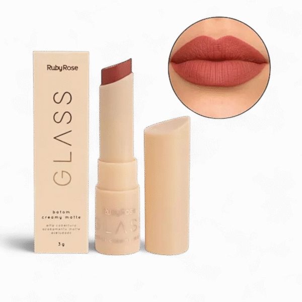 El labial en barra CREAMY MATTE de Glass proporciona una cobertura total con un acabado matte suave como la seda.